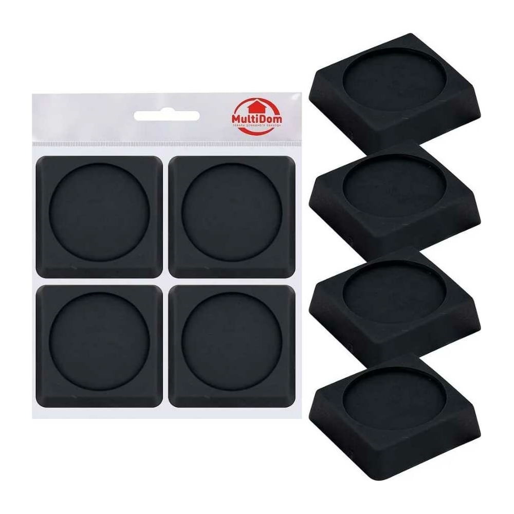 Антивибрационные подставки для стиральных машин и холодильников МУЛЬТИДОМ 4 шт. (квадрат, черный) 6x6 см ПТ76-145