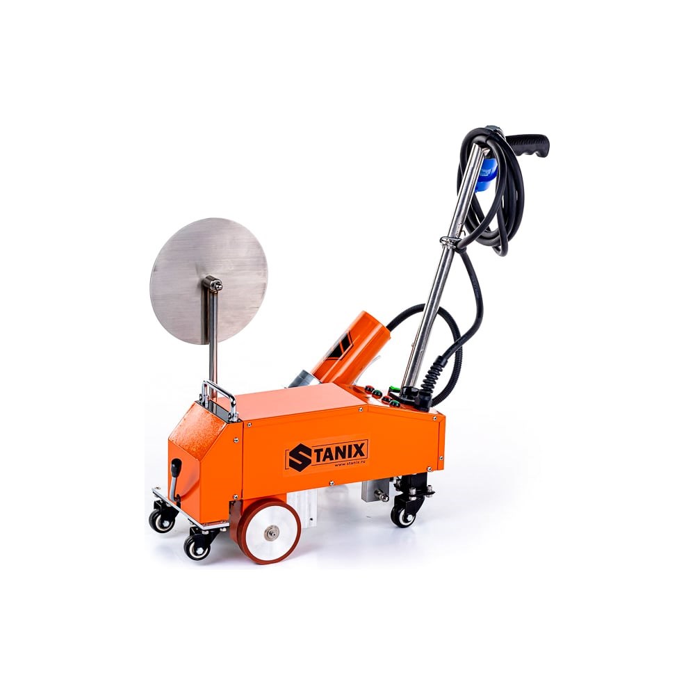 Аппарат горячего воздуха STANIX TAPEMASTER - это автоматическое сварочное устройство, предназначенное для наварки ленты. Прибор отличается компактными габаритами по сравнению с аналогичными машинами и высокой производительностью (в зависимости от выбранного режима, за минуту производит сварку до 10 метров полотна), а потому активно используется при создании тентов и навесов, в производстве палаток, промышленных завесов, монтаже рекламных билбордов и баннеров.Сварочный аппарат может применяться при работе с пленочными мембранными покрытиями, полимерными материалами и полотнами, в составе которых присутствует битум и ТПО.Скрепление деталей осуществляется посредством контактно-теплового способа, при котором элементы вначале нагреваются до высоких температур, а после прижимаются специальными роликами под большим давлением. Воздушный поток направляется в зону спайки через узкое сопло, после чего роликовая система прижимает части между собой по периметру шва, делая его более прочным и герметичным. За счет того, что на полотно осуществляется наварка ленты, конструкция, в целом, становится более жесткой. Дополнительно ткани могут быть укреплены при помощи шнуров и люверсов по периметру.Управление устройством осуществляется при помощи комплекса рычагов, клавиш, а все команды и параметры отображаются на небольшом жидкокристаллическом дисплее. В процессе работы можно настраивать ширину прижимной ленты и регулировать температуру с точностью до градуса.