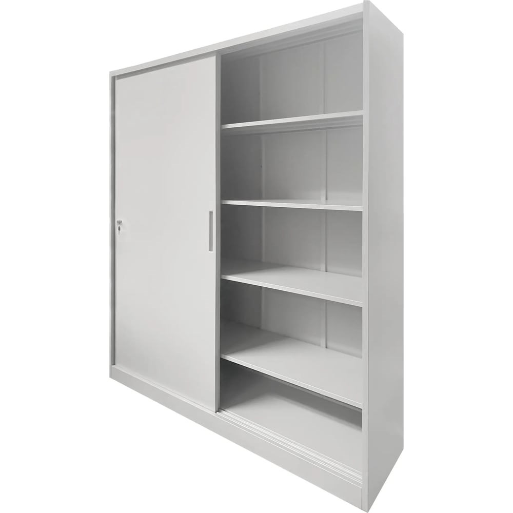Архивный шкаф-купе GRETTE предназначен для хранения документов и различных вещей. Замок алюминиевый цилиндрический серого цвета с индикацией положения открыто/закрыто, складывающийся ключ. Пластиковые ручки в дверях серого цвета. Крыша и задняя стенка у всех шкафов имеют ребра жесткости. Сборка на винтах, минимум крепежных точек. Ни одного крепежного элемента или отверстия на внешней стороне шкафа. Полки имеют 2 ребра жесткости по всей длине.