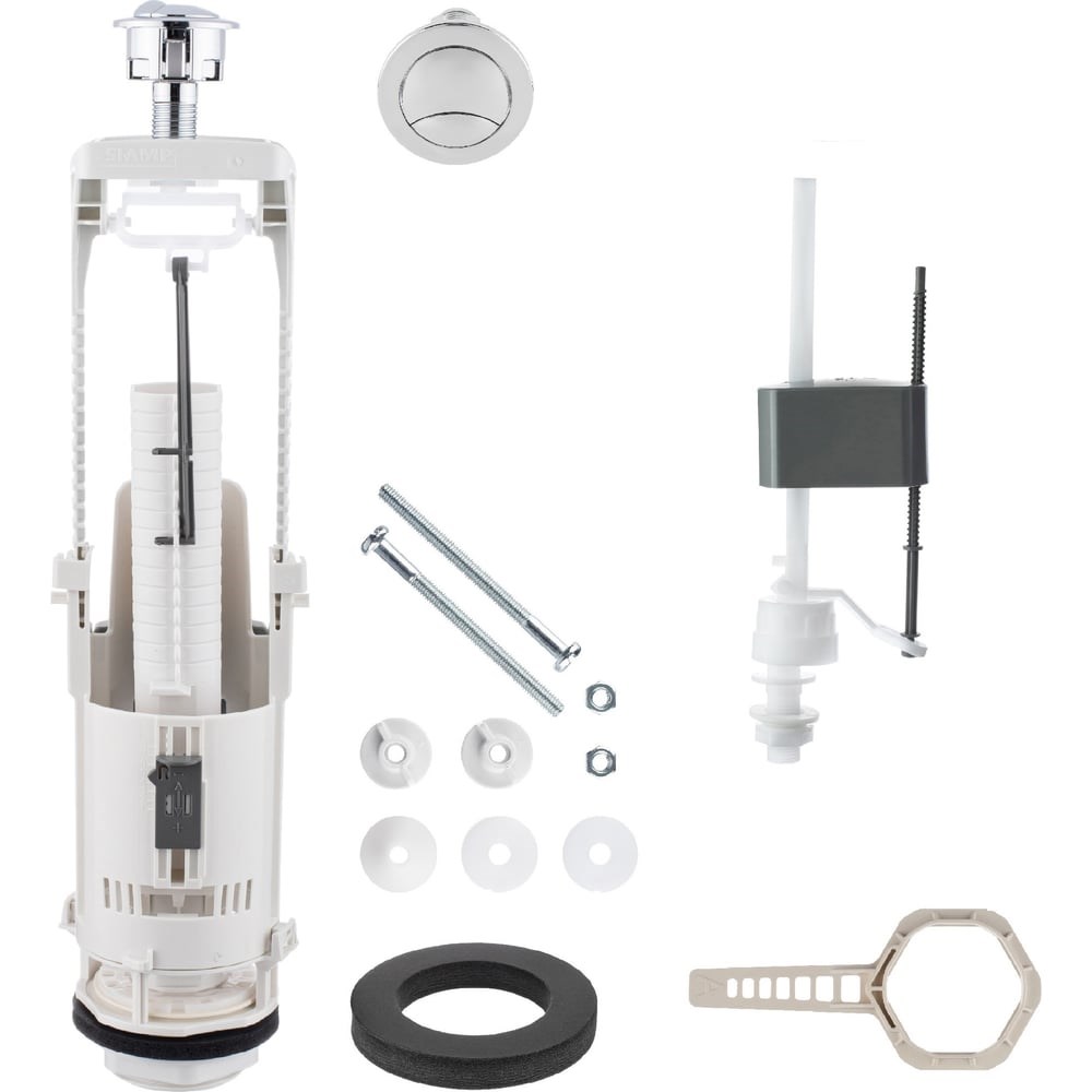 Арматура подходит к унитазамCersanit, Vitra, JacobDelafon, Roca, Vitra и др.Клапан спускной BRIO 573 с двойным кнопочным пускомПодходит для бачков различной высоты: высота спускного клапана регулируется от 305 до 457мм.Предназначен для бачков с диаметром отверстия в крышке от 38 до 42мм. (допустимое смещение кнопки +/- 12 мм) и с отверстием в дне бачка диаметром от 60 до 72мм.Регулируемый объем большого и малого спуска воды. Большой спуск регулируется с 6л. до 4л., малый спуск регулируется с 3л. до 2л.Высокопрочная хромированная кнопка устойчивая к истиранию (покрытие нанесено методом гальванизации).Испытан и сертифицирован более чем на 200 000 циклов.Седло (или донный клапан) изготовлено из пластика ABS.Прокладка между спускным клапаном и дном бачка выполнена из литого эластомера СБС. Её эластичность и форма усиливают герметичность донной части бачка.Прокладка между бачком и унитазом изготовлена из пенорезины, позволяет компенсировать неровности полки унитазаКлапан наполнительный BAS 24 ½'Наполнительный клапан с нижним подключением ½’, пластиковый штуцер.Универсальный, подходит для всех типов бачков.Создан специально для воды с высоким содержанием примесей.Регулируемый уровень набора воды.Пропускная способность 0,16 л/с под давлением 3 бар.Рабочее давление от 0,5 до 10 бар.Продукция изготовлена в соответствии с ГОСТ 21485-2016.Монтажный комплект в наборе поставки.