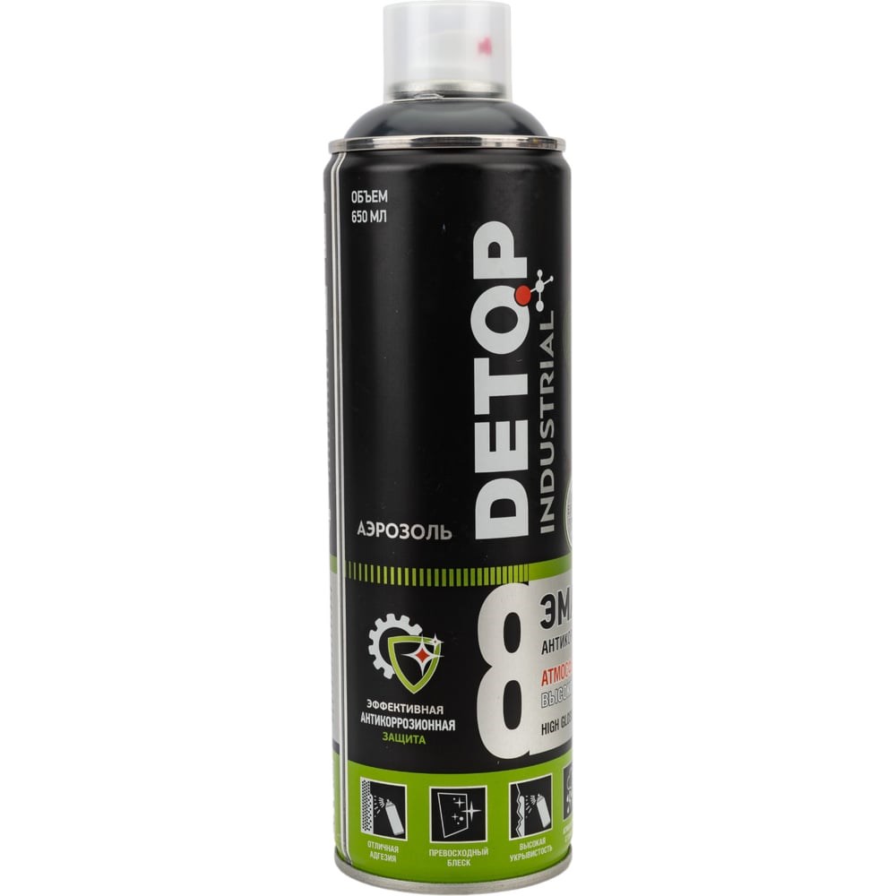 Эмаль DETOP атмосферостойкая, высокоглянцевая, графитово-серый, RAL 7024, аэрозоль 650 мл DTI-A07769 применяется для создания декоративного покрытия и защиты от коррозии металлоконструкций, транспортных средств, кузовов сельскохозяйственных машин, изделий машиностроения и станкостроения, оборудования и других изделий, эксплуатируемых в условиях промышленной атмосферы, содержащей агрессивные пары и газы, повышенную влажность. Алкидная эмаль наносится на предварительно загрунтованную поверхность. Для достижения наилучшей антикоррозионной защиты рекомендуется использовать DETOP №2 "Грунт эпоксидный толстослойный" или DETOP №3 "Грунт Двойная барьерная защита".