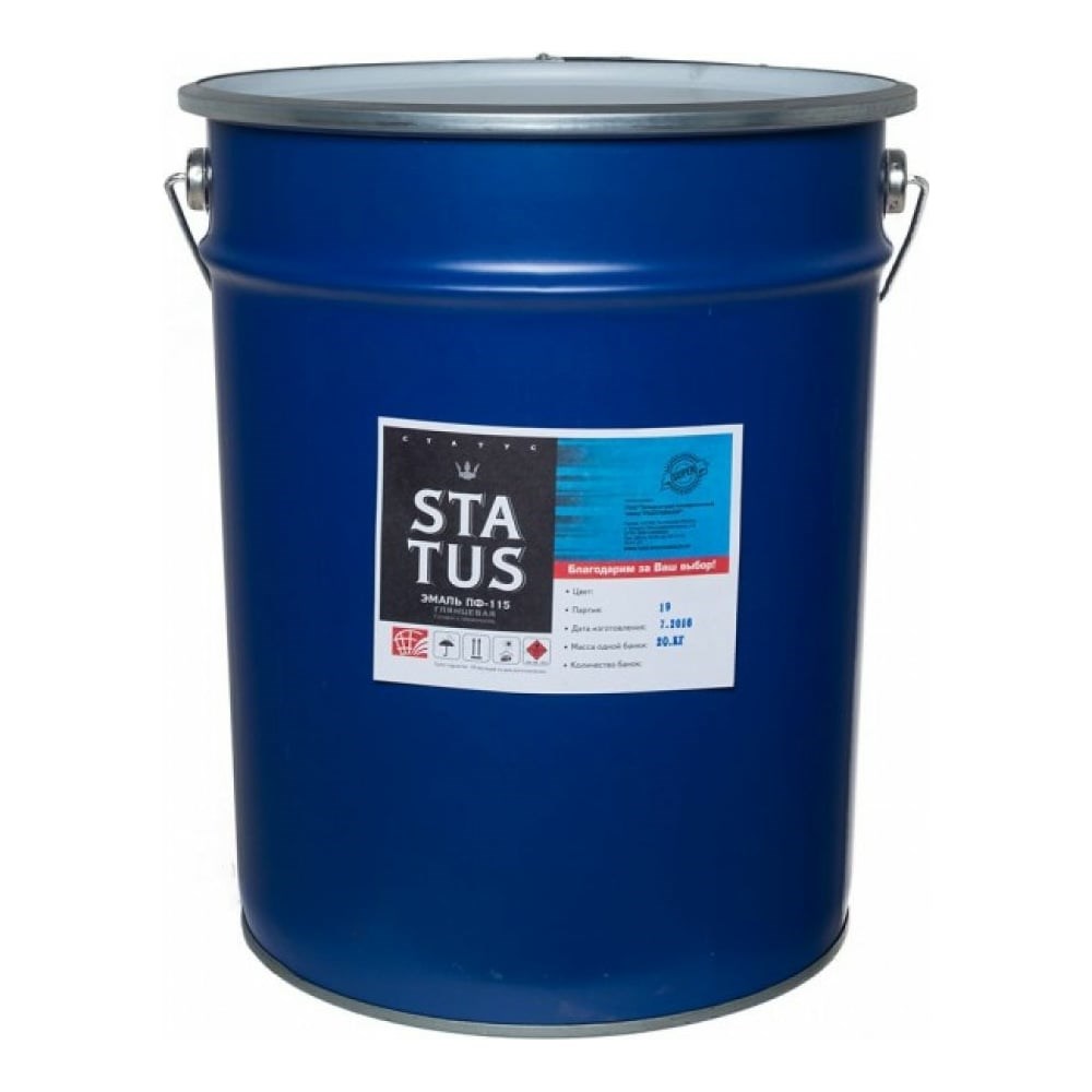 Краска атмосферостойкая Радугамалер STATUS ПФ-115 серая 10 кг 2000996555209 - эмаль для наружных и внутренних работ, готовая к применению предназначена для покрытия металлических, деревянных, бетонных, оштукатуренных и других поверхностей, подвергающихся атмосферным воздействиям. Насыщенные цвета, высокий глянец, атмосферостойкая. Степень блеска: Глянцевая Расход: На однослойное покрытие 150-180 г/м2. Разбавитель: Сольвент, уайт-спирит, скипидар. ;Или их смесью не более 5% от массы эмали. Способ нанесения: Эмаль наносят краскораспылителем, валиком или кистью на сухую, предварительно очищенную от пыли и других загрязнений поверхность. Время высыхания: Каждого слоя эмали при температуре (20±2)°C - 24 часа.