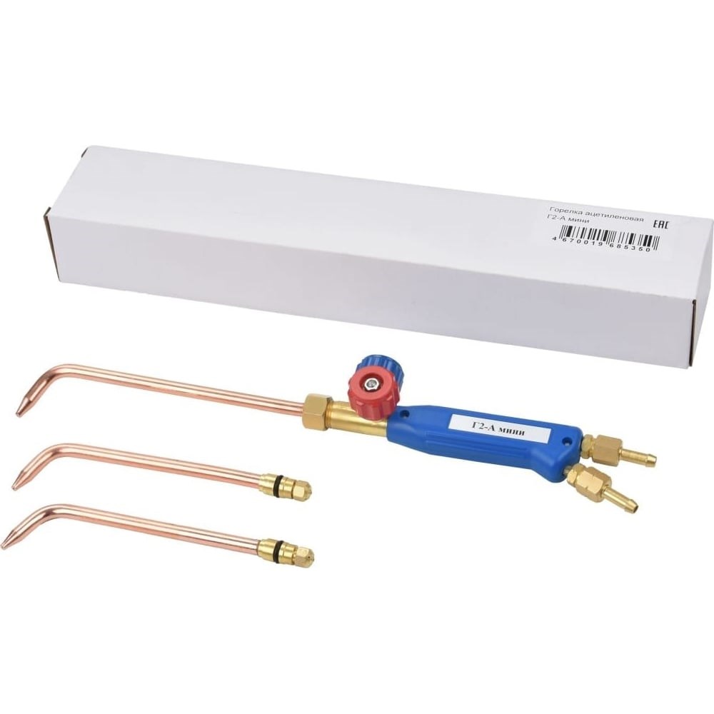 Горелка ацетиленовая Г2-А мини наконечники №1,2,3 Brima НП000001510 предназначена для ручной ацетилен-кислородной сварки, пайки высокотемпературными припоями, нагрева и других видов газопламенной обработки металлов толщиной до 4 мм. Маркировка наконечников выбита на инжекторах. Горелка состоит из термопластиковой рукоятки со штуцерами, к которым крепятся при помощи накидных гаек М12х1,25\ М12х1,25LH ниппели для присоединения рукавов с внутренним диаметром 6,3 мм по ГОСТ 9356. Корпус эргономичной рукоятки с вентильной группой для точной настройки пламени и расхода газов. Ступенчатое регулирование происходит путем смены наконечников. Наконечники присоединяются к рукоятке с помощью накидной гайки. Горелка легкая и обладает компактными размерами. Давление газов и расход зависит от установленного наконечника. За счет большого теплоотвода горелка выдерживает продолжительные нагрузки без охлаждения. Медные цельнотянутые наконечники № 1А, 2А и 3А входят в комплект поставки. Рекомендуется устанавливать на редуктора предохранительные затворы или клапана. Маркировка наконечника и толщина свариваемого металла: № 1А - (0.5-1.0 мм) № 2А - (1.0-2.0 мм) № 3А - (2.0-4.0 мм)