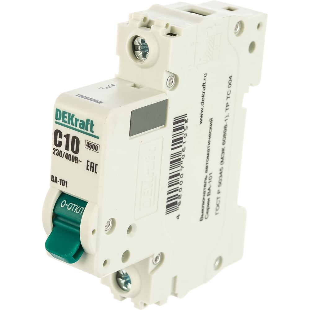 Автоматический выключатель серии ВА-101 Dekraft1Pноминальный ток 10 Ахарактеристика Сотключающая способность 4,5 кА5 монолитных заклепок повышают прочность корпуса аппарата. Сплошная лицевая панель обеспечивает безопасность эксплуатации аппарата. Боковые каналы охлаждения повышают стабильность работы при высоких температурах окружающей среды. Есть возможность установки дополнительных аксессуаров с левой стороны устройства. Аппарат на 100% совместим с корпусами Dekraft и Systeme Electric.