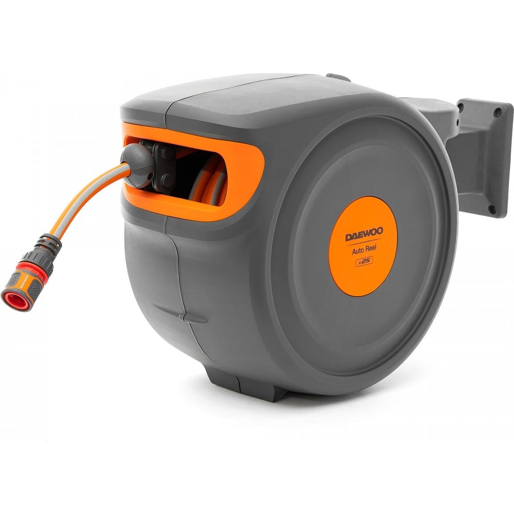 Катушка оснащена шлангом MaxiFlex, который устойчив к заломам и перекручиванию. Автоматическая и равномерная смотка шланга Стоппер защищает шланг от полного сматывания внутрь катушки Надежный кронштейн для крепления на стену с углом поворота на 180° Полный набор аксессуаров для быстрого начала работы 25 м шланга позволяют использовать катушку на участках от 150 до 300 м2