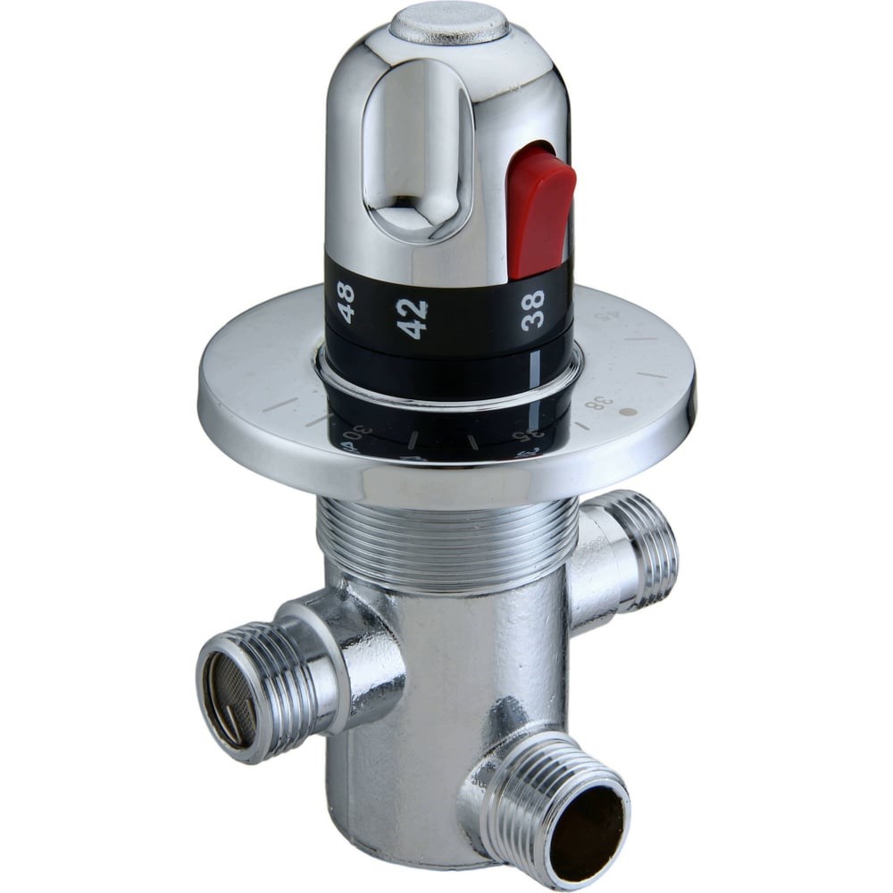 Автоматический термостатический смеситель Kopfgescheit KR533 12D автоматически смешивает и поддерживает заданную температуру воды на выходе. Подходит для монтажа в стену, когда присутствует необходимость в регулярной подстройке температуры воды, при этом разводка воды осуществляется закрытым способом. Имеет малые размеры и простую систему крепления к стене, разработан для систем водоснабжения полипропиленовыми и металлопластиковыми трубами диаметром ½”. Имеет встроенные обратные клапаны для горячей и холодной воды с фильтрами грубой очистки, защиту от ожогов. Возможно подключение до пяти точек раздачи воды (в зависимости от местных условий).