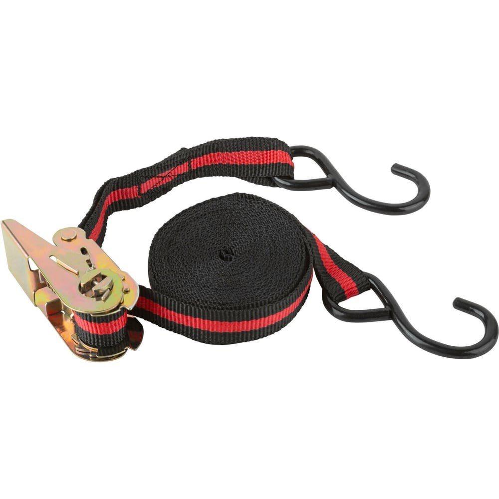 Для фиксации грузов. Замок с храповым механизмом, 2 закаленных крюка. Максимальная рабочая нагрузка 135 кг, разрывная нагрузка 270 кг. Материал: крюки из термообработанной инструментальной стали с черненым покрытием, храповый механизм из инструментальной стали с цинковым покрытием, ремень из полипропиленового волокна.