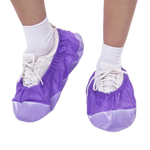 Бахилы ламинированные, КОМПЛЕКТ 500 шт., 38х16 см, спанбонд + ПВД, 100 мкм, 13 г, фиолетовые, ELEGREEN, ПВД-50/2р-Ф-Б