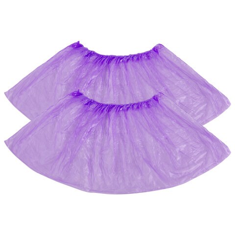 Бахилы одноразовые фиолетового цвета с одинарной резинкой, однослойные.