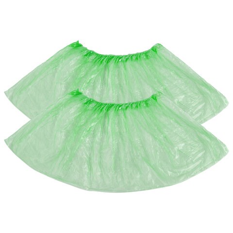 Бахилы одноразовые зеленого цвета с одинарной резинкой, однослойные.