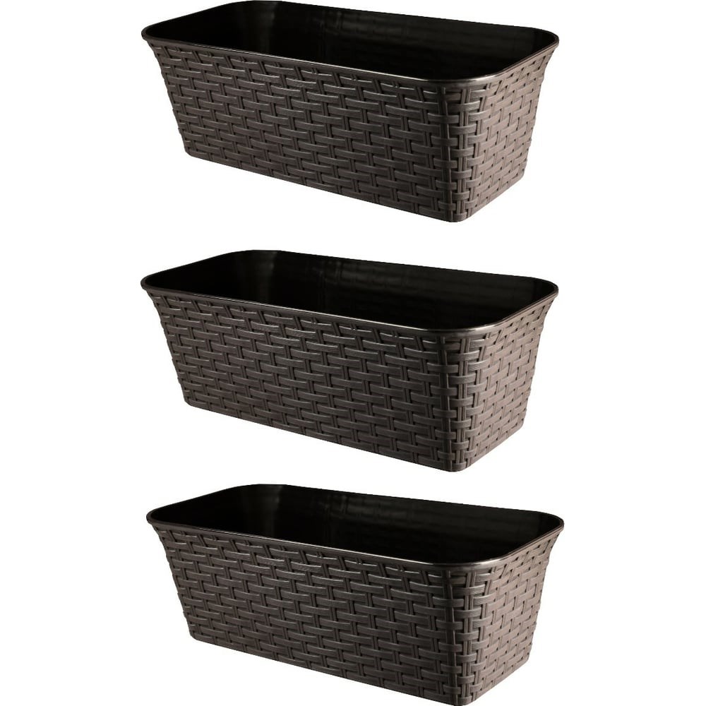 Балконный ящик Violet Ротанг 43 см, с дренажем, венге, 3 шт. N-Kahpo-3-35400-05 - стильное решение для любого интерьера. Ящик для цветов выполнен из экологически чистого и безопасного полипропилена, предназначенного для живых, декоративных или искусственных растений. Кашпо из качественного пластика прекрасно подойдет для оформления подоконника, балкона, лоджии, зимнего сада, а также любых жилых и рабочих помещений, садовых и уличных пространств. Оптимальный размер ящиков позволяет сэкономить пространство и разместить в них сразу несколько растений, создать целую композицию из цветов, а также без труда выращивать рассаду. Горшки для цветов имеют удобную дренажную систему, необходимую для лучшего увлажнения корней. Благодаря ей можно не беспокоиться о проблемах перелива или высыхания растения. Внутренняя сторона кашпо имеет гладкую фактуру, что препятствует прирастанию корней к стенкам горшка и облегчает процесс высадки растений и ухода за ним. Корпус ящика цельный, без отверстий.