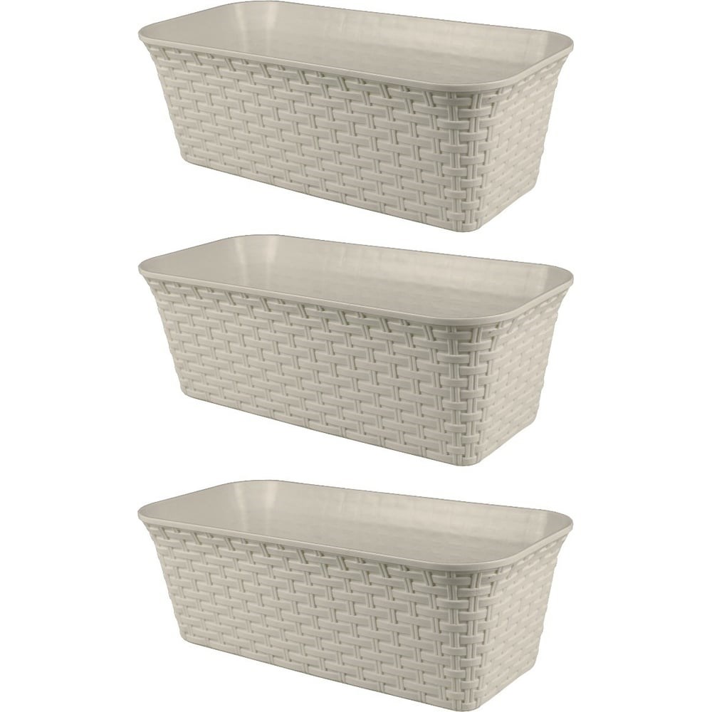 Балконный ящик Violet Ротанг 43 см, с дренажем, слоновая кость, 3 шт. N-Kahpo-3-35400-26 - стильное решение для любого интерьера. Ящик для цветов выполнен из экологически чистого и безопасного полипропилена, предназначенного для живых, декоративных или искусственных растений. Кашпо из качественного пластика прекрасно подойдет для оформления подоконника, балкона, лоджии, зимнего сада, а также любых жилых и рабочих помещений, садовых и уличных пространств. Оптимальный размер ящиков позволяет сэкономить пространство и разместить в них сразу несколько растений, создать целую композицию из цветов, а также без труда выращивать рассаду. Горшки для цветов имеют удобную дренажную систему, необходимую для лучшего увлажнения корней. Благодаря ей можно не беспокоиться о проблемах перелива или высыхания растения. Внутренняя сторона кашпо имеет гладкую фактуру, что препятствует прирастанию корней к стенкам горшка и облегчает процесс высадки растений и ухода за ним. Корпус ящика цельный, без отверстий.
