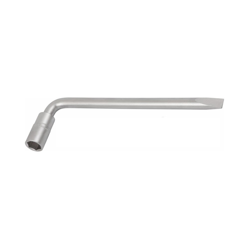 Баллонный Г-образный ключ 17х19 мм МАСТАК 011-42265 - автомобильный инструмент для ручного затягивания и откручивания колесного крепежа при замене шин и дисков. Ключ выполнен из прочной стали. Он имеет двустороннее применение - с одной стороны расположена головка размером 17х19 мм, с другой - демонтажная лопаточка.