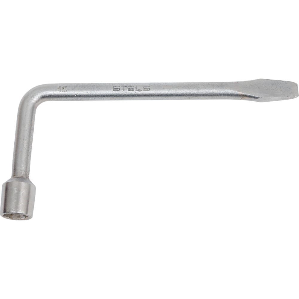 Баллонный ключ, 19 мм STELS 14224 — автомобильный инструмент для монтажа и демонтажа колес. Изделие изготовлено из высокопрочной углеродистой стали и способно выдерживать значительные нагрузки. Г-образная форма ключа увеличивает крутящий момент и делает работу пользователя более простой и удобной. Несъемная торцевая головка с шестигранным профилем расположена под углом к ручке ключа.