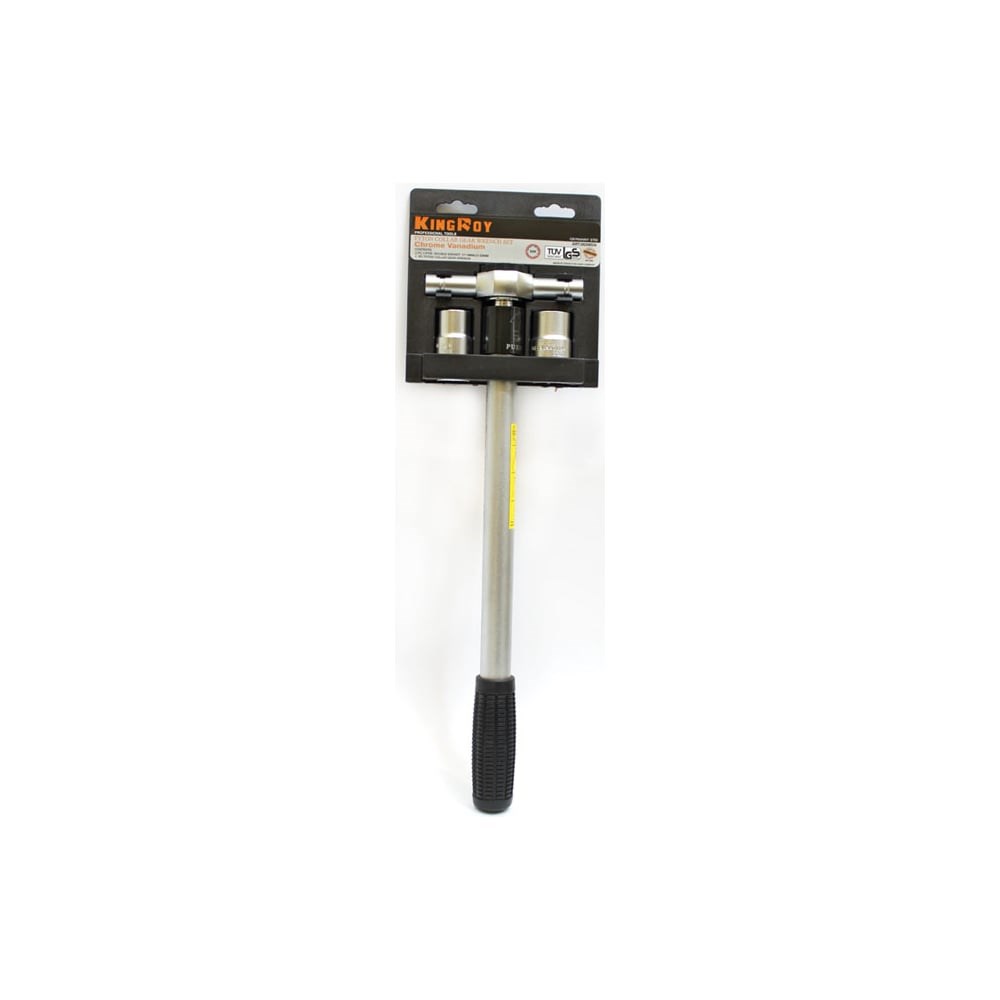 Балонный ключ KING ROY 003-MDA трещоточный, 3 предмета, 1/2", 17-19, 21-23 мм 37698 используется для монтажа и демонтажа автомобильных колес. Инструмент выполнен из качественной хромованадиевой стали. Материал отличается прочностью и долговечностью. В комплекте поставляются головки размерами 17-19 и 21-23 мм.
