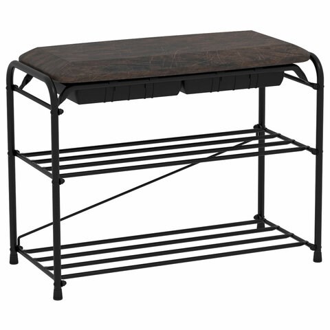 Банкетка для обуви "Альфа-23СЯ", 650х300х480 мм, 2 полки, ящик, металл/кожзам, черный/коричневый, ПДОА23СЯ Ч
