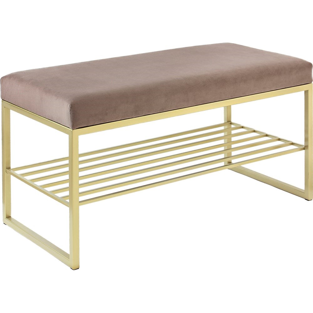 Банкетка RUBY MINI с золотым основанием и мягкой велюровой подушкой. Характеристики банкетки RUBY MINI: • размеры: (длина х ширина х высота) 850 х 400 х 450 мм, • вес – 11,45 кг, • высота подушки — 80 мм, • обивка — искусственный велюр, • наполнитель — пенополиуретан, • максимальная нагрузка — 120 кг. Основание банкетки изготовлено из стали с полимерным покрытием. Стальной каркас изготовлен из профильной трубы 20х20 мм. Собственное производство обеспечивает надежность и эстетику сварных швов металлической мебели. Банкетка с велюровой подушкой отличается элегантным видом и комфортной посадкой. Мягкая обивка с высокой износостойкостью, прошла тест Мартиндейла — 35 000 циклов. Бархатистая ткань легко чистится от загрязнений, для ухода разрешена сухая и влажная чистка. Стильная банкетка подойдет для прихожей, спальни, гостиной и кабинета. Банкетка лофт добавит изысканности интерьеру квартиры, офиса, салона и загородного дома. Банкетка отлично сочетается со стеллажами LOFT. Банкетку доставляем в собранном виде в надежной упаковке.