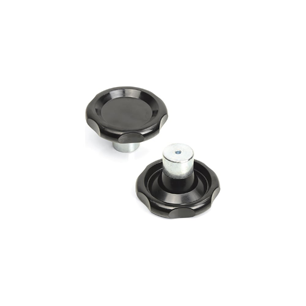 Материал:Бакелит.Исполнение:Цвет: черный матовый RAL 9005.Оцинкованная втулка.Устойчив к маслам, смазкам и растворителям.Температура эксплуатации: от -30 °C до +120 °C.Диаметр: 65 мм.