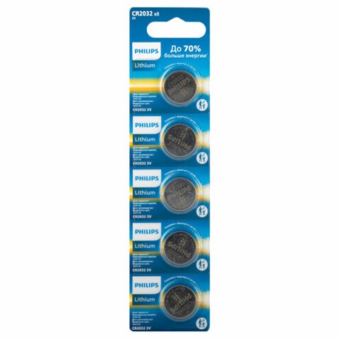 Батарейка литиевая PHILIPS Lithium CR2032, таблетка, дисковая, кнопочная, 1 шт., блистер (отрывной блок), Б0064640