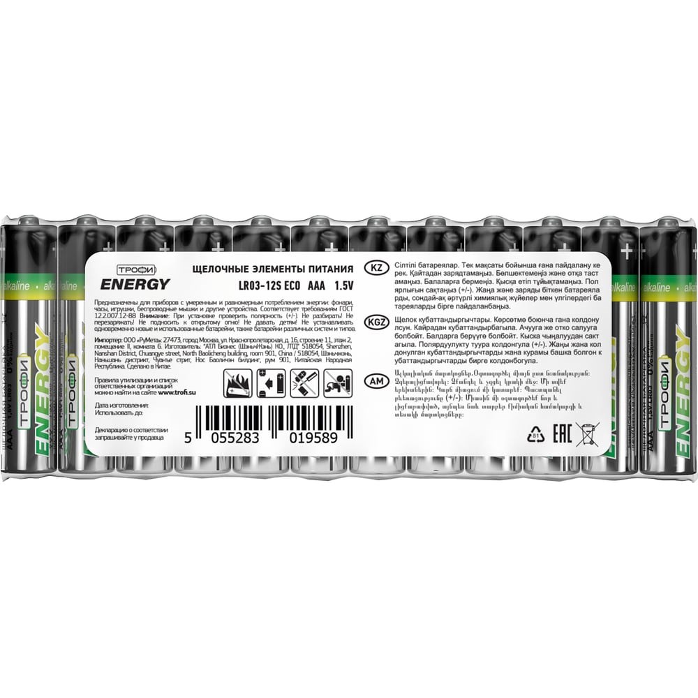 Элемент питания Трофи LR03-12S ECO Б0027813 - экономичная серия щелочных батареек для питания устройств с равномерным и распределенным во времени потреблением энергии: пульты дистанционного управления, простейшие игрушки, светодиодные фонари и др.