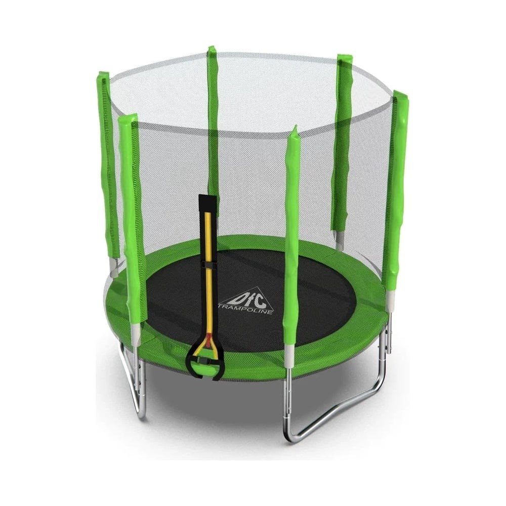 Батут с сеткой DFC Trampoline Fitness 5FT-TR-LG предназначен для домашнего и уличного использования. Он станет отличным приобретением для отработки техники прыжков, либо для развлечения и активного отдыха дома и на природе. Надёжность конструкции. Надежность конструкции обеспечивается прочной рамой с оцинкованным покрытием, нанесенным методом холодной гальванизации.  Рама изготовлена из круглой трубы диаметром 32 мм и толщиной 1 мм. Внешняя защитная сетка, поставляемая в комплекте, обеспечит безопасность от случайного падения, изготовлена из высокопрочного нейлона, надежно крепится к  стойкам батута. Пружины выполнены из высококачественной стали, которые имеют повышенную защиту от износа и растягивания, тем самым позволяя продлить срок службы батута.