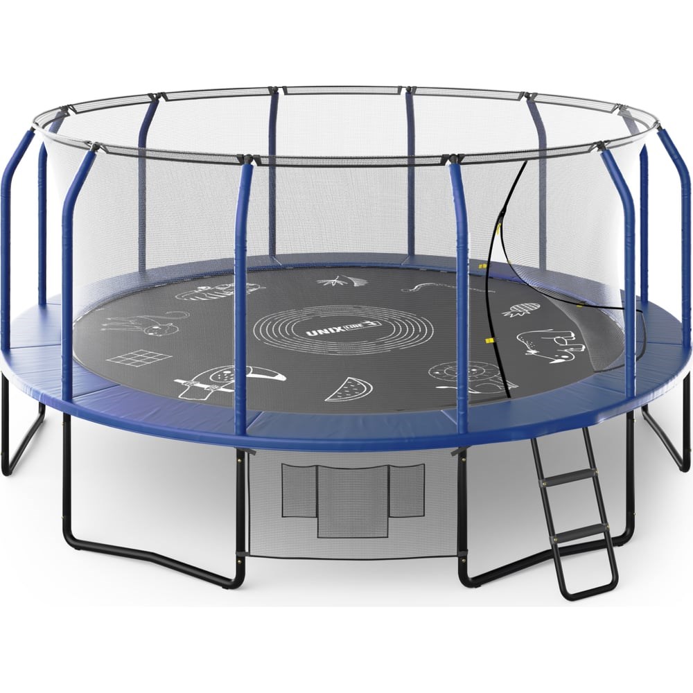 Батут UNIXline SUPREME GAME 16 ft blue TRUSUG16BL способен выдерживать нагрузку до 170 кг.Инновационные батуты UNIX line SUPREME GAME (4 in 1) - это уникальные в своем роде батуты для игр и творчества!Благодаря особой пропитке прыжкового полотна, на нем можно рисовать мелками, рисунки получаются яркими и легко стираются влажной тканью или губкой.Основные игры на батутах UNIX line SUPREME GAME (4 in 1):1. «Лабиринт».Данная игра лучше всего подходит для двоих, когда один игрок перекрывает проходы создавая лабиринт, а другой игрок пытается его пройти. Второй вариант игры – найти путь от одного животного к другому.2. «Крестики-нолики».Всем известная игра, давно полюбившаяся детям и взрослым.3. «Раскрась животное».Все изображения на прыжковом полотне разработаны таким образом, чтобы их могли разукрасить даже самые юные художники, но стоит включить воображение, например добавить тени и изобразить детали, как животные буквально «оживают», поэтому данное занятие придется по вкусу и более опытным любителям живописи.4. «Нарисуй сам».Для реализации самых интересных идей дизайнеры специально оставили пустые места на прыжковом полотне. Полная свобода творчества, ограничивающаяся лишь фантазией художника.Для рисования на прыжковом полотне, необходимо использовать только мелки для асфальта. Ручки, карандаши, маркеры, фломастеры и иные пишущие средства запрещены для использования на прыжковом полотне.