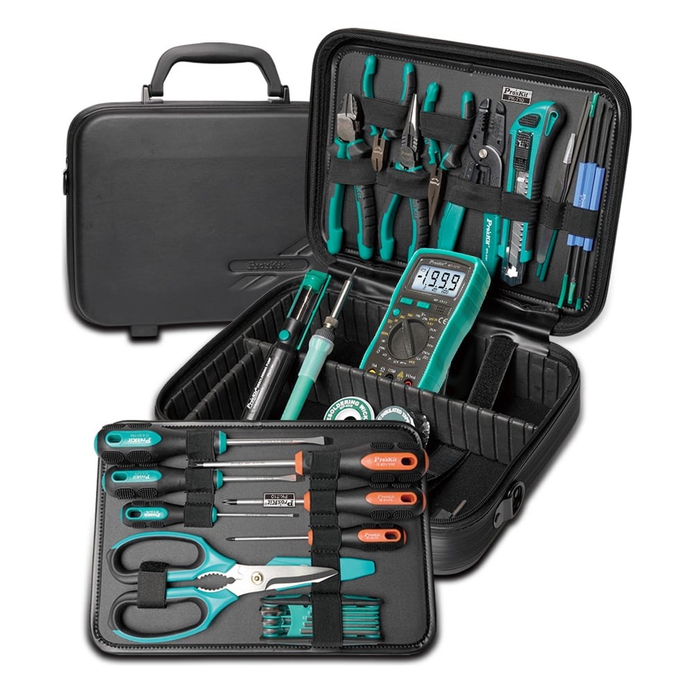 Набор инструментов для электроники ProsKit PK-710KB базовый С00040051 отлично подходит для работы с электроникой. Благодаря мультиметру в комплекте можно легко измерить любое напряжение и сопротивление.