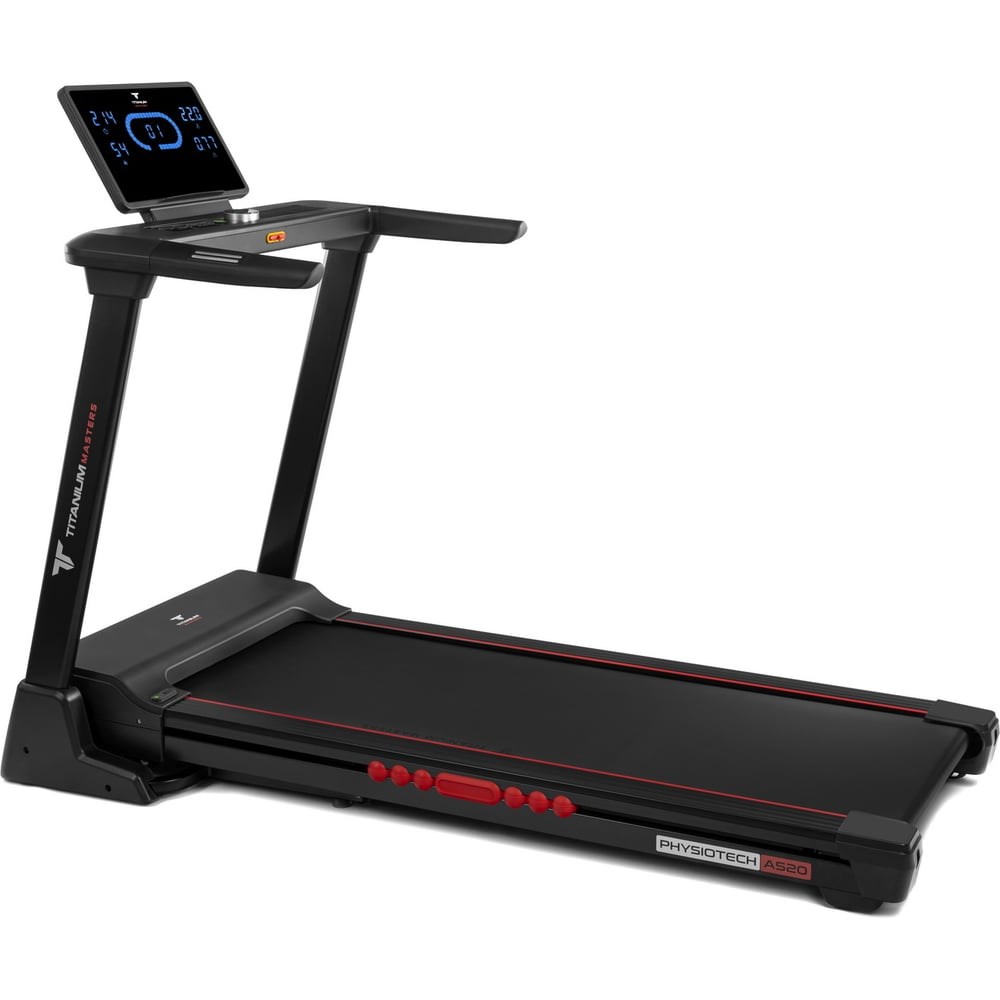 Titanium Masters Physiotech A520 относится к числу самых премиальных домашних беговых дорожек. Здесь использованы наиболее качественные компоненты, а заявленные технические характеристики представляют собой максимально возможные в классе беговых дорожек для домашнего использования.Двигатель японской Fuji Electric мощностью 4,0 л.с. практически не имеет ограничений – максимальный вес пользователя составляет 160 кг. Размер бегового полотна 151 см в длину и 55 см в ширину обеспечивает наиболее комфортный и безопасный режим ходьбы и бега на любых скоростях, включая максимальные. Само беговое полотно толщиной 2,2 мм от производителя наиболее качественных полотен швейцарской компании Habasit™ относится к классу коммерческих и при надлежащем обслуживании пройдет без замены десятки тысяч километров. Максимальная скорость до 22 км/ч. Электрический угол наклона регулируется в диапазоне от 0 до 20%.В программный пакет тренировочного компьютера входит невероятные количество разных программ. Есть здесь также жироанализатор Body Fat и тест Индекса массы тела BMI.Преимуществом дорожки является система автоматического смазывания. Достаточно раз в несколько месяцев доливать силиконовую смазку в специальную емкость – и далее система будет самостоятельно распределять необходимое количество смазки.