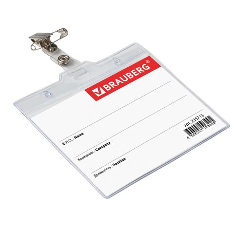 Бейдж горизонтальный БОЛЬШОЙ (90х120 мм), с клипсой и булавкой, мягкий, BRAUBERG, 235713