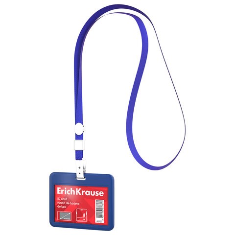 Бейдж горизонтальный ERICH KRAUSE (85х54 мм), корпус синий, цвет ленты синий, 63737