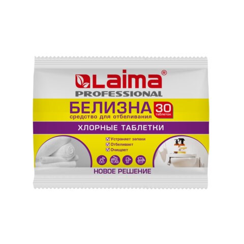 БЕЛИЗНА в хлорных таблетках для отбеливания, дезинфекции и уборки 30 шт., 0,1 кг, флоупак, LAIMA PROFESSIONAL, 609422