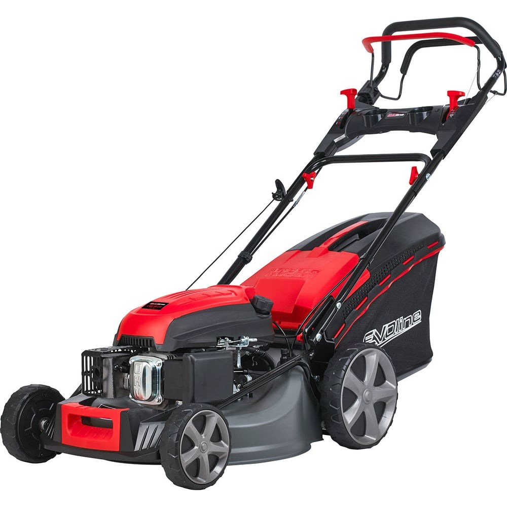 Бензиновая самоходная газонокосилка EVOline LMG 48 CV— это незаменимый помощник в уходе за газоном на небольших и средних по площади участках. Мощности двигателя EVOline (3,9 л.с.) хватает для стабильной и качественной работы в условиях даже активной эксплуатации. Ширина скашивания в 48 см позволяет быстро выполнить работу, не делая лишних проходов. Специальная S-образная форма ножа, которым оснащена данная модель, обеспечивает мощный воздушный поток, который перед скашиванием «подтягивает» траву вверх. Центральная регулировка высоты кошения в 6-ти положениях позволяет одним движением руки выбрать нужную высоту среза травы от 25 до 75 мм. Крупные колеса, на двойных подшипниках, обеспечивают лучшую маневренность на неровных поверхностях и удобство при транспортировке. Трансмиссия с динамическим вариатором позволяет выбрать одну из 4-х скоростей, максимально комфортную для оператора. Антивибрационное покрытие на эргономичной рукоятке снижает уровень вибрации. Вместительный комбинированный травосборник объемом 70 л с индикатором заполнения не заставит останавливаться понапрасну для его опустошения. Наличие коннектора для подключения воды для очистки деки позволяет за считанные минуты промыть деку не переворачивая газонокосилку.