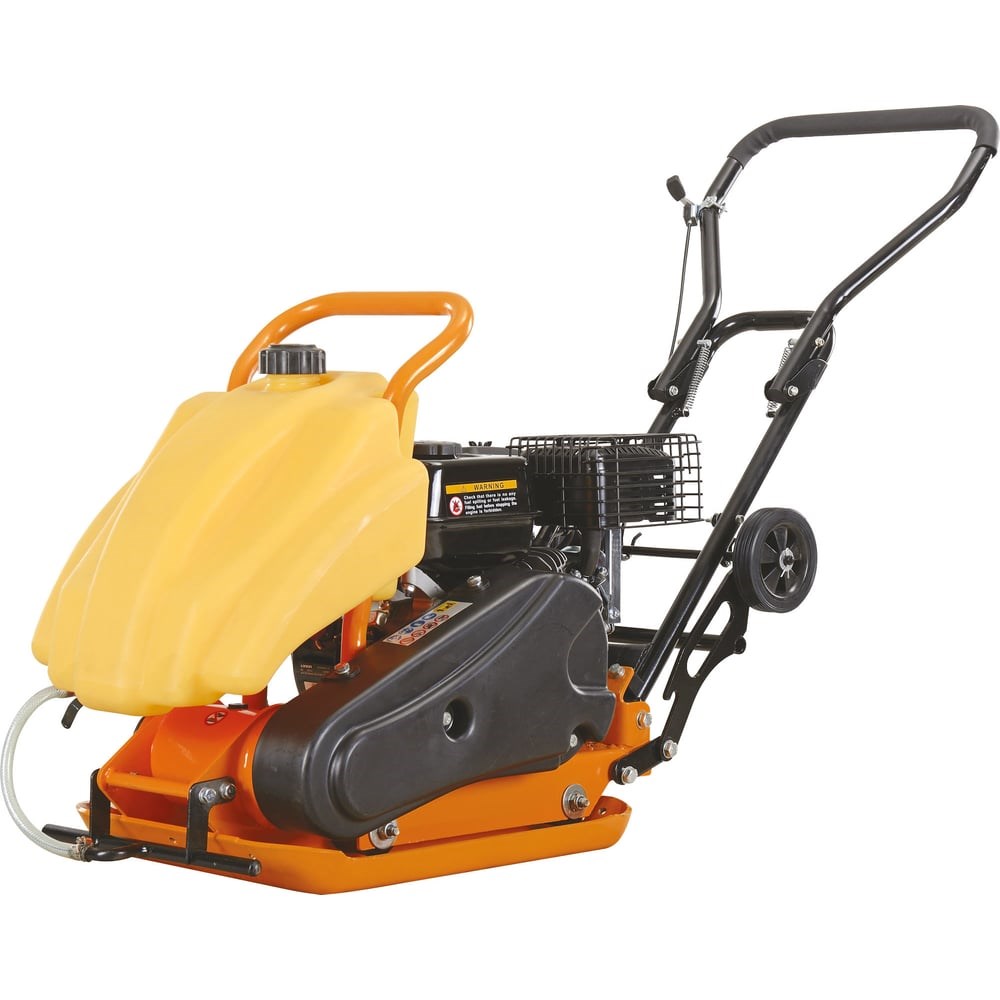 Бензиновая виброплита с подачей воды Кратон KR-PC87 4 02 09 003 предназначается для уплотнения грунта и других сыпучих материалов. Устройство не требует подключения к электросети, так как оснащается бензиновым двигателем модели Loncin 200F. В качестве топлива используется бензин АИ-92. При полном баке агрегат способен работать около 4 часов без дозаправки. Оборудование оснащается баком для воды и отлично справляется с уплотнением асфальта. Надежный виброузел обладает устойчивостью к износу, что способствует длительной эксплуатации без сервисного обслуживания.