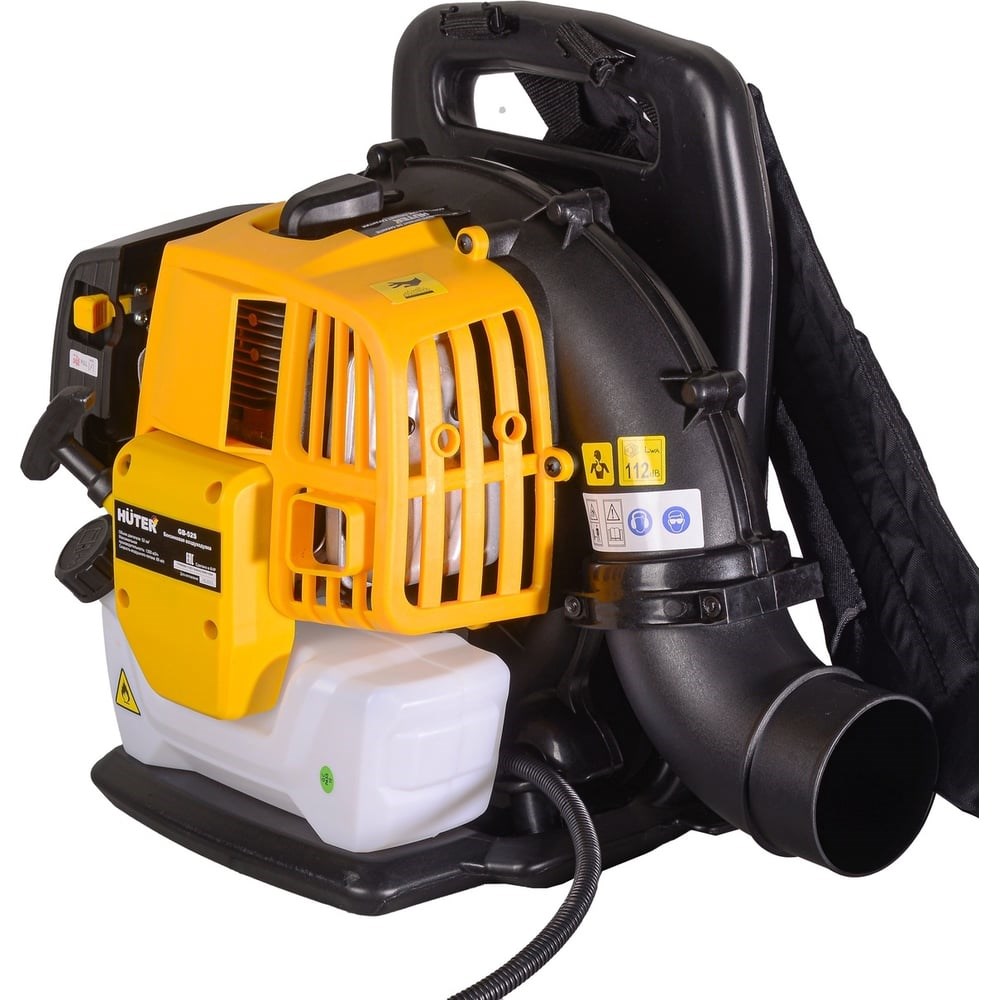 Модель бензиновой воздуходувки Huter GB-52S является отличным заменителем метлы, граблей и другого инструмента для сбора опавшей листвы, мусора и неслежавшегося снега в саду и на придомовой территории. Она оснащена удобными плечевыми ремнями, что позволяет с комфортом передвигаться по участку во время уборки.Напор воздуха на выходе воздуходувки создаётся за счёт вращения крыльчатки вентилятора, которая закреплена на валу силового агрегата и нагнетания всасываемого воздуха в напорную трубу.Агрегат работает от одноцилиндрового 2-тактного бензинового двигателя мощностью 2.15 кВт, объёмом 52 см³ с карбюратором, праймером и зажиганием электронного типа (CDI).Объём выбрасываемого воздуха составляет 1350 м³/ч, а максимальная его скорость – 85 м/с. Направленный воздушный поток достаточно мощный и позволяет эффективно очищать территорию.Модель Huter GB-52S получила ручной стартер с регулируемой рукояткой и фиксатором, клавишу включения зажигания, курок газа. Тип используемой свечи зажигания – L7TC. Система охлаждения силового агрегата – воздушная с фильтром. Воздуходувка комплектуется также трубой для выдува воздуха, гибким патрубком, топливным баком объёмом 1.4 л, глушителем. Вес агрегата – 9 кг.