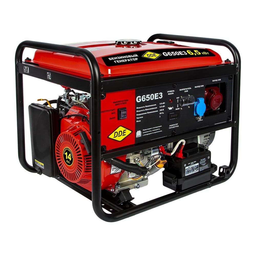 Бензиновый генератор DDE G650E3 917-446 служит в качестве источника энергоснабжения для бытовых и осветительных приборов. Установка широко применяется в загородном доме, на даче или на торговой точке. Одной заправки хватает примерно на 9 часов работы агрегата. Все рабочие узлы устройства помещены на прочную раму сечением 28 мм и толщиной 2.5 мм, которая образует ручки для удобства перемещения. Предусмотрен масляный щуп для контроля смазочной смеси в картере с целью своевременной замены.
