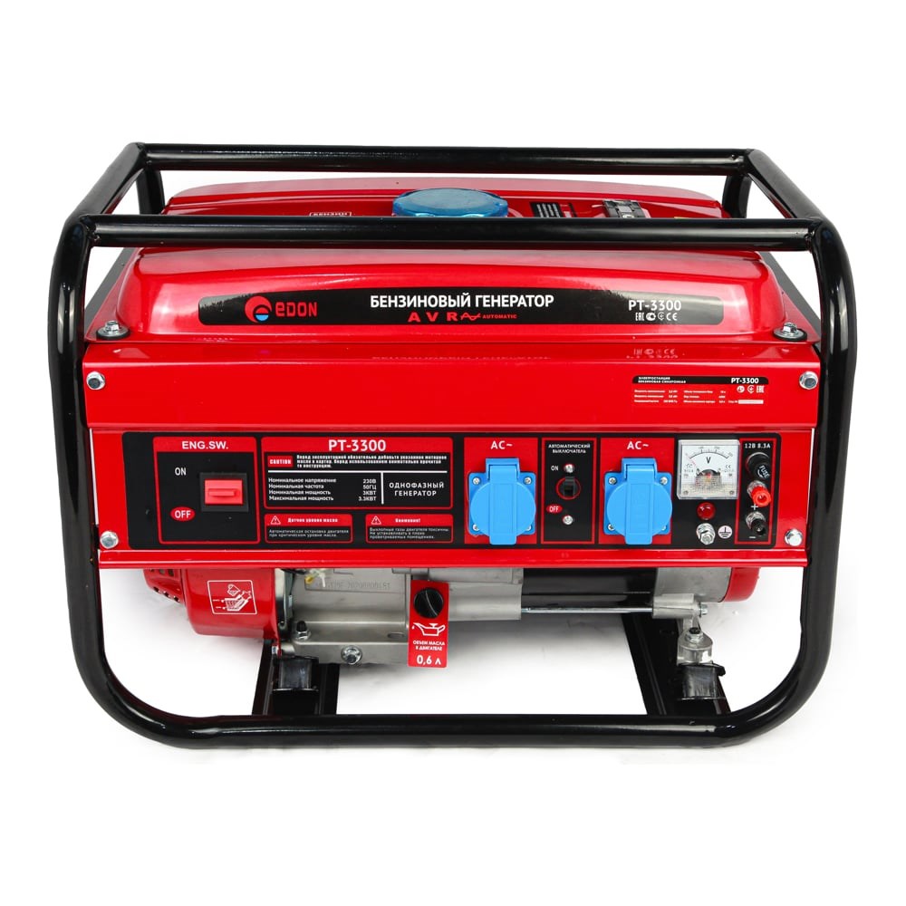 Бензогенератор EDON PT-3300 1005010611 служит для автономного электроснабжения различных бытовых приборов, и ручного электроинструмента общей мощностью до 3,3 кВт. Оснащен прочной металлической рамой и защищенными розетками. Имеет невысокий уровень шума, что позволяет безопасно работать внутри помещений.