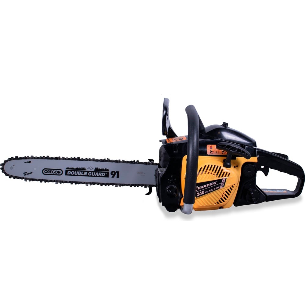 Бензопила CHAMPION 240-16 предназначена для распиливания заготовок из древесины, раскряжевки и валки деревьев, спиливания ветвей. Инструмент оборудован уловителем цепи, рычагом тормоза, цепью с низкой отдачей и блокиратором курка газа, что повышает безопасность использования. Функция легкого запуска обеспечивает быстрый и легкий старт данной модели. Высокая производительность достигается за счет мощного бензинового двигателя, поддерживающим скорость цепи до 12000 об/мин.