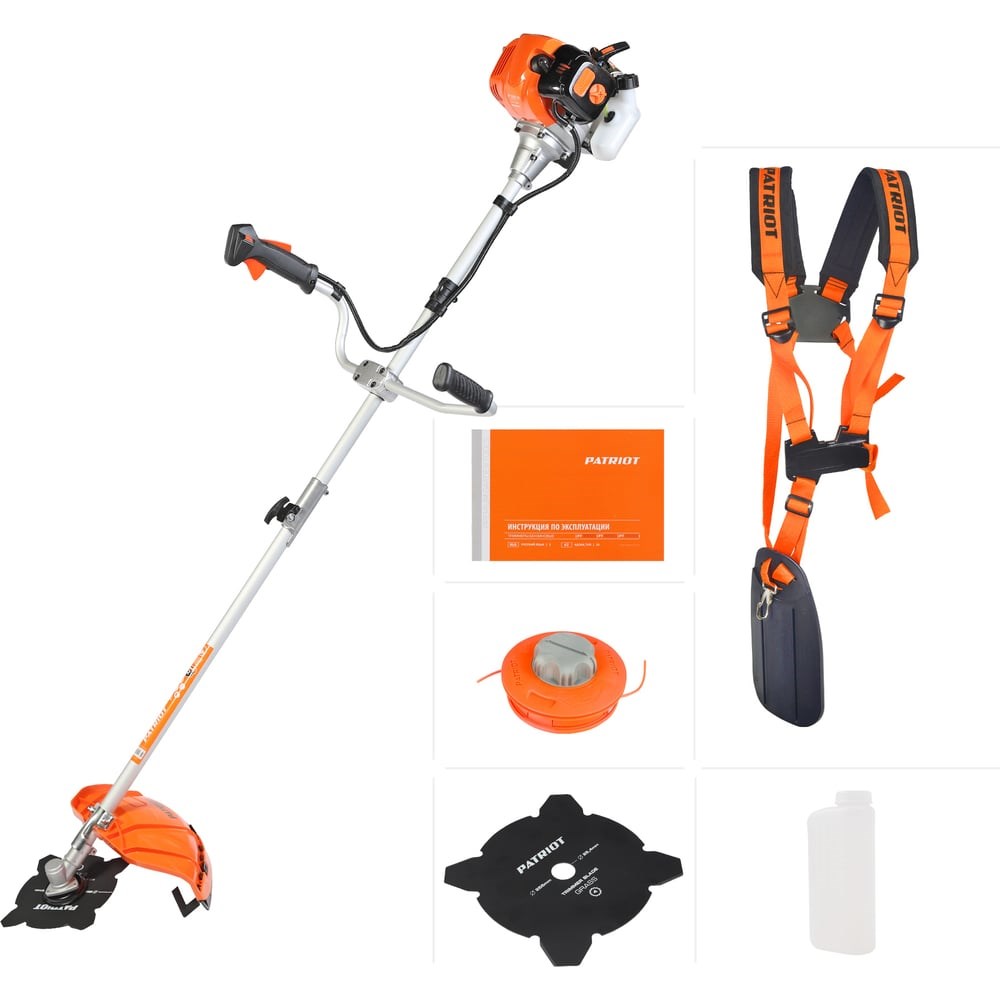Бензотриммер PATRIOT PT 3555ES Country 250108035 - инструмент для проведения работ по декоративному скашиванию. Двигатель работает на топливной смеси. Праймер облегчает запуск. Модель способна скашивать траву любой высоты. Режущий нож используется для борьбы с зарослями борщевика и амброзии.