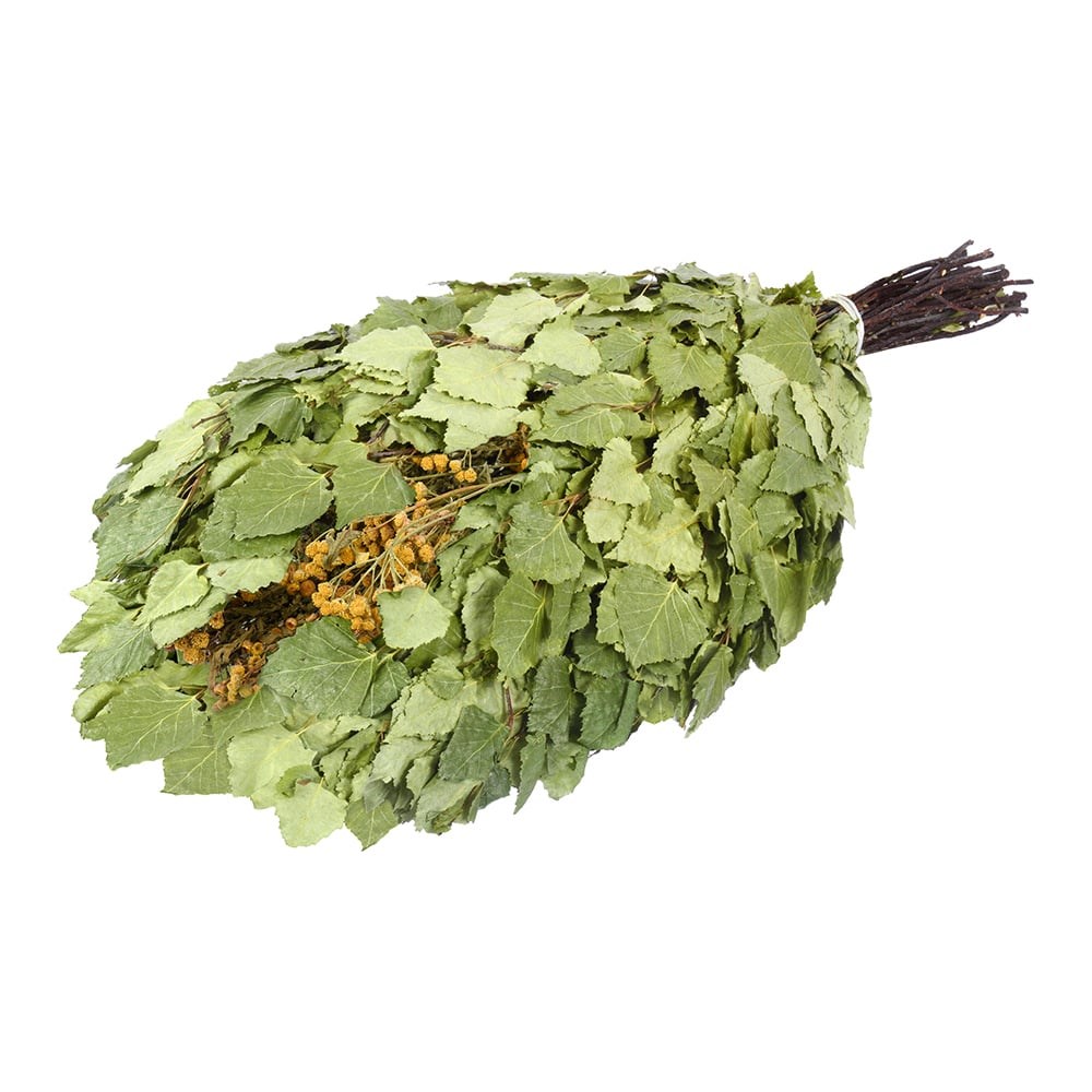Березовый веник с пижмой Банные штучки 32106 - настоящий символ русской бани. Отлично массирует, очищает кожу, выводит шлаки из организма. Перед использованием его необходимо ополоснуть сначала теплой водой, а потом поместить в таз с холодной водой минут на 20-30. После этого вода из таза сливается, а веник заливается горячей водой на 5-7 минут.