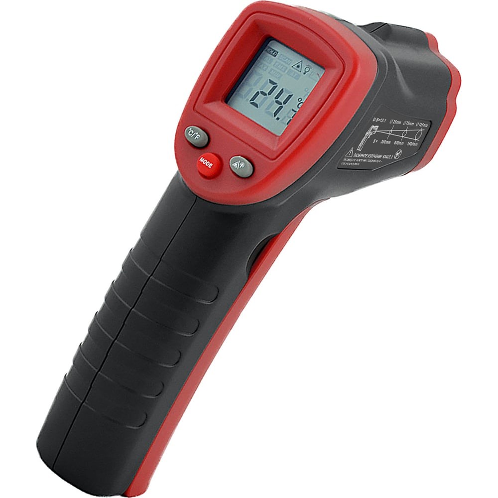 МЕГЕОН 16401 - промышленный высокоточный бесконтактный термометр. Технические возможности прибора позволяют проводить измерения в диапазоне -50 ... 380°С. Программное обеспечение даёт возможность осуществить установку коэффициента излучения в зависимости от отражающей способности исследуемого предмета. Время проведения замеров сведено к минимуму до 0,5 секунды. Все полученные результаты отображаются на ЖК-дисплее с яркой светодиодной подсветкой.Для изготовления корпуса был выбран качественный пластик повышенной прочности. С целью удобства проведения измерений пирометр оснащён лазерным целеуказателем. Увеличение срока службы элементов питания осуществляется функцией автоматического отключения измерителя после 15 сек. бездействия. Эргономичный вид, качество изготовления и параметры изделия удовлетворят требования самых искушённых пользователей