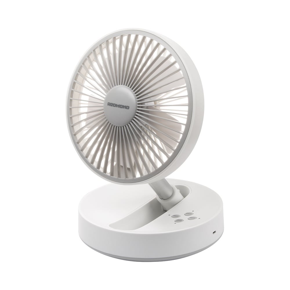 Беспроводной вентилятор REDMOND AP2205 - уникальный портативный прибор для дома, офиса и автомобиля. Устройство имеет режим волнообразной подачи воздуха и может работать 24 часа без подзарядки. Низкий уровень шума в 47 дБ не помешает вашему отдыху. Вентилятор складывается тремя способами, чтобы вы использовали его в любой ситуации. Можно повесить вентилятор на стену, чтобы он не занимал лишнего места. Можно поднять верхний блок и установить прибор на столе, чтобы работать с комфортом. А можно выдвинуть телескопическую подставку и поставить вентилятор на пол, чтобы освежить комнату. Мощный аккумулятор в 7200 мАч держит заряд в течение суток. Для полного заряда батареи понадобится от 6 до 8 часов. Кнопка OCEAN BREEZE запускает волнообразную подачу воздуха, которая имитирует легкие плавные движения прибрежного ветра. Выберите интенсивность обдува, и вы почувствуете себя на берегу озера или на побережье океана. Кнопка SPEED задает скорость, с которой вращаются лопасти: 1 нажатие - и легкое движение воздуха создаст комфорт в детской 3 нажатия - и максимальный обдув быстро проветрит кухню Вентилятор отработает время, которое вы задали, и сам отключится. Установите таймер на 1, 2 или 4 часа и не отвлекайтесь, чтобы выключить прибор. Обслуживать вентилятор просто. Чтобы снять защитную решетку, ее достаточно просто повернуть против часовой стрелки. После этого можно протереть блок вентилятора, решетку и лопасти влажной губкой или тканью.