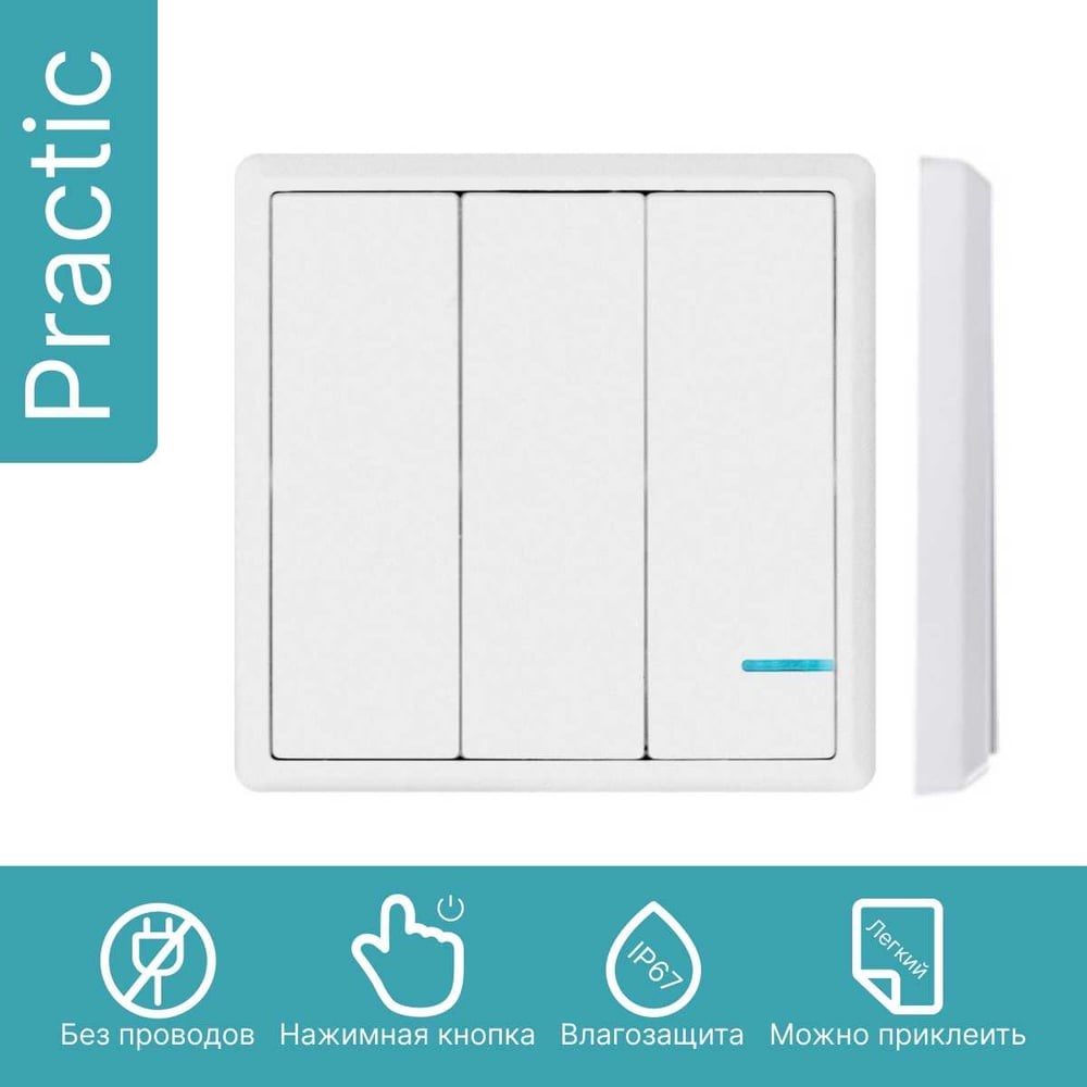 Беспроводной выключатель GRITT Practic 3 клавиши, белый, без реле 11005 - беспроводной выключатель для удаленного включения электроприборов без прокладки электропроводки к выключателю.Работает с реле GRITT Practic (приобретается отдельно). С реле линеек GRITT Core, Core 2.0 и EnCore данный выключатель несовместим!