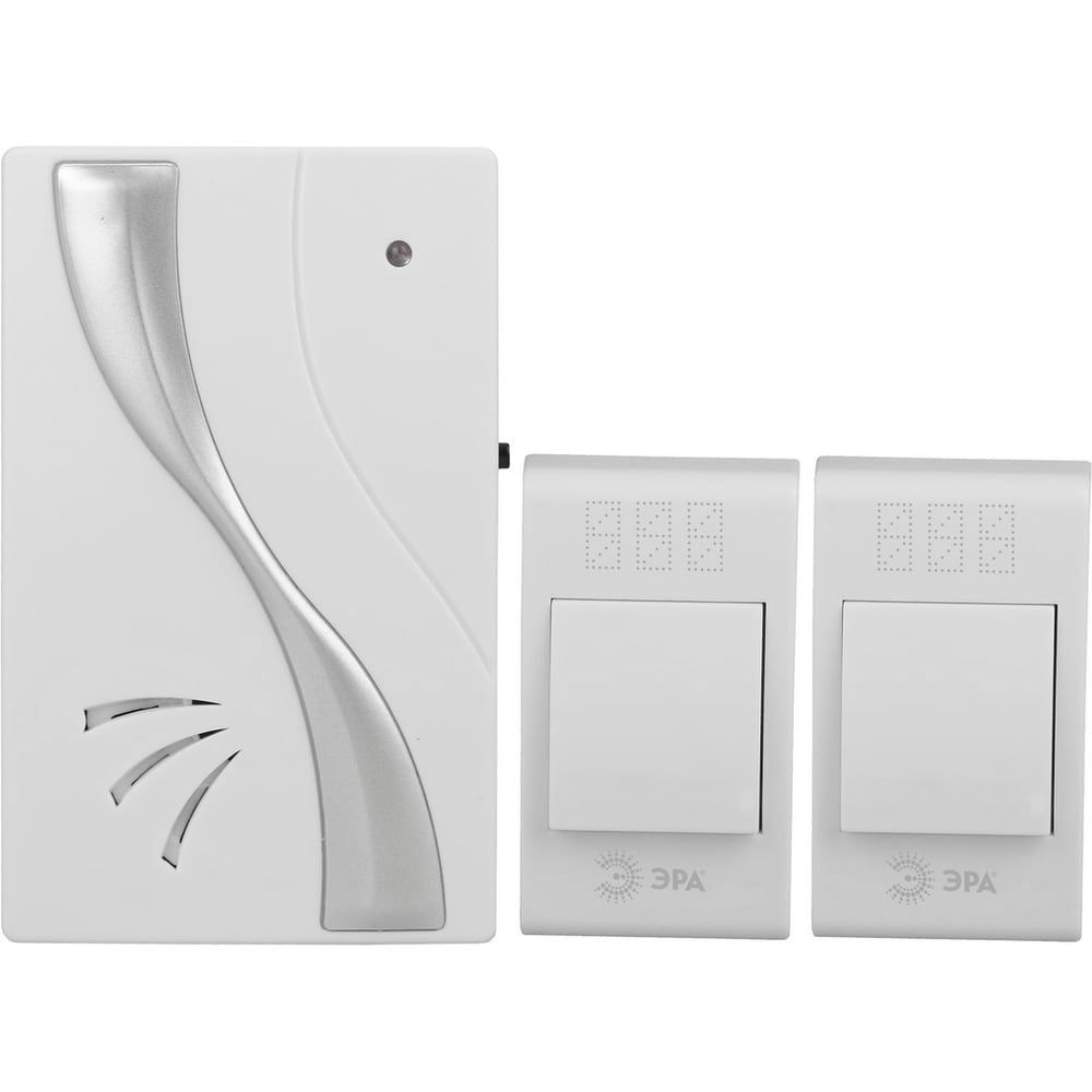 Беспроводной звонок ЭРА TWIN-B Б0019877 с 32 мелодиями, кнопка защищена от влаги и пыли. Радиус действия до 100 метров. Аккуратный лаконичный дизайн, базовый белый цвет. Динамик украшен серебристыми узорами, над кнопкой предусмотрено пространство для указания номера квартиры.
