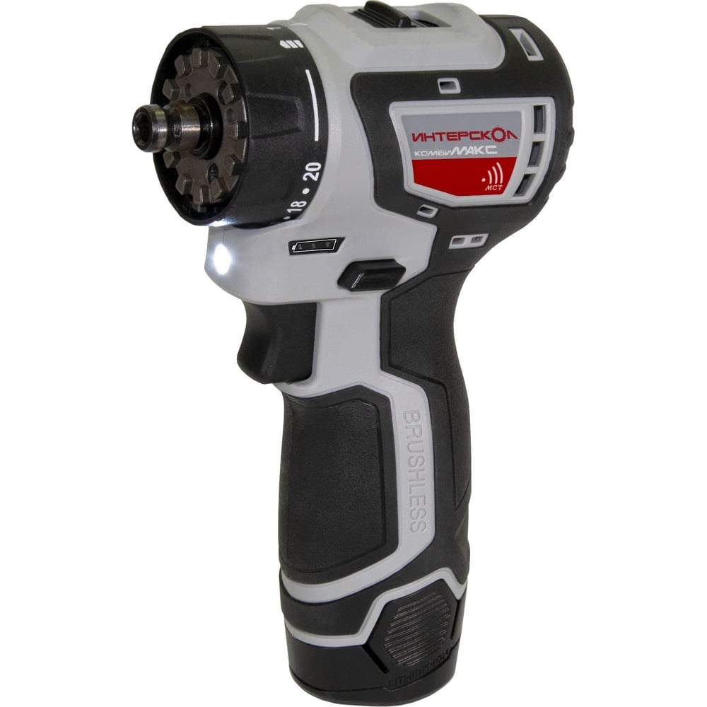 Бесщеточная аккумуляторная дрель-шуруповерт ИНТЕРСКОЛ ДА-10/12В 36 КомбиМАКС