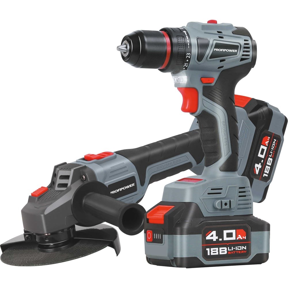 Аккумуляторный бесщеточный набор 2в1 Profipower Тип-2 УШМ MKDGA-18V, шуруповерт MKBL-18B, Li-ion-2шт 18В, 4.0Ач, З/У E0220