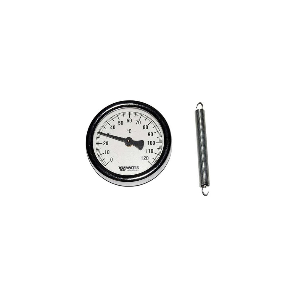 Биметаллический термометр F+R810 TCM 10006505 предназначен для измерения температуры теплоносителя в трубопроводах систем отопления, ГВС. Состоит из металлического корпуса с акриловым стеклом, оснащен черной указательной стрелкой и пружиной для крепления на трубу 1"- 2". Циферблат отмечен черной шкалой на белой алюминиевой пластине.