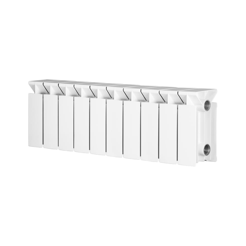 Серия CS 150/120 Устанавливаются на специальные опоры - арт. 011060311 Радиаторы RADENA bimetall — секционные, полнобиметаллические радиаторы, разработаные в Италии в соответствии с европейскими стандартами и с учетом особенностей российских систем отопления. Радиаторы сертифицированы и отвечают всем европейским и российским нормам. Биметаллические радиаторы RADENA предназначены для применения в системах отопления жилых, общественных и промышленных зданий. Изготовлены в соответствии с ГОСТ 31311–2005. Биметаллический радиатор состоит из секций, соединенных с помощью стальных ниппелей и паронитовых (безасбетовых) прокладок, обеспечивающих герметичность соединений при температуре теплоносителя +120 °С. Внутренняя часть секции радиатора (коллектор) состоит из вертикальной и горизонтальной стальных труб, соединенных с высокой точностью автоматической сваркой в среде аргона. Коллектор биметаллического радиатора заключен в оболочку из высокопрочного алюминиевого сплава методом литья под давлением. Оптимальное оребрение секции радиатора позволяют достичь высоких показателей теплоотдачи, уменьшают инертность прибора. В радиаторе CS150 секции с вертикальным каналом (проходные) чередуются с секциями (6, 8, 10, 12, 14, 16) без вертикального канала (не проходные). Радиатор окрашен в несколько слоев эпоксидным полиэстером методом анафореза и электростатического напыления порошковой эмали. Базовый цвет радиатора – белый RAL 9016.