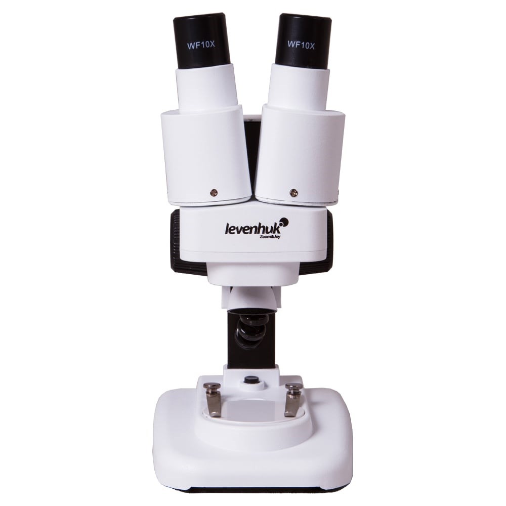 Бинокулярный микроскоп Levenhuk 1ST 70404 дает 20-кратное увеличение и передает четкую и контрастную картинку по всему полю зрения. Вы сможете видеть структуру образцов, рассматривать дефекты на поверхностях, проводить точные работы с биологическими препаратами. Оптика данной модели создает объемное изображение, подсветка позволяет работать в условиях недостаточной освещенности. Над предметным столиком расположен светодиодный осветитель, яркости которого хватит даже для работы в ночное время. Подсветка работает от двух батареек типа АА (нет в комплекте). Вы можете зафиксировать образец на предметном столике при помощи металлических держателей. Для точной фокусировки используйте ручку грубой настройки.