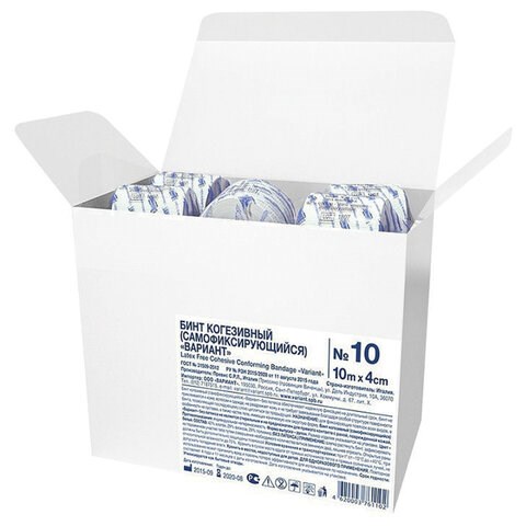 Бинт эластичный самофиксирующийся 10 м х 4 см, белый, КОМПЛЕКТ 10 шт., "ВАРИАНТ"