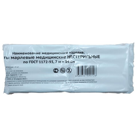Бинт марлевый нестерильный 14 см х 7 м, КОМПЛЕКТ 20 шт., плотность 36 (±2) г/м2, NEW LIFE, ТТ-00253775